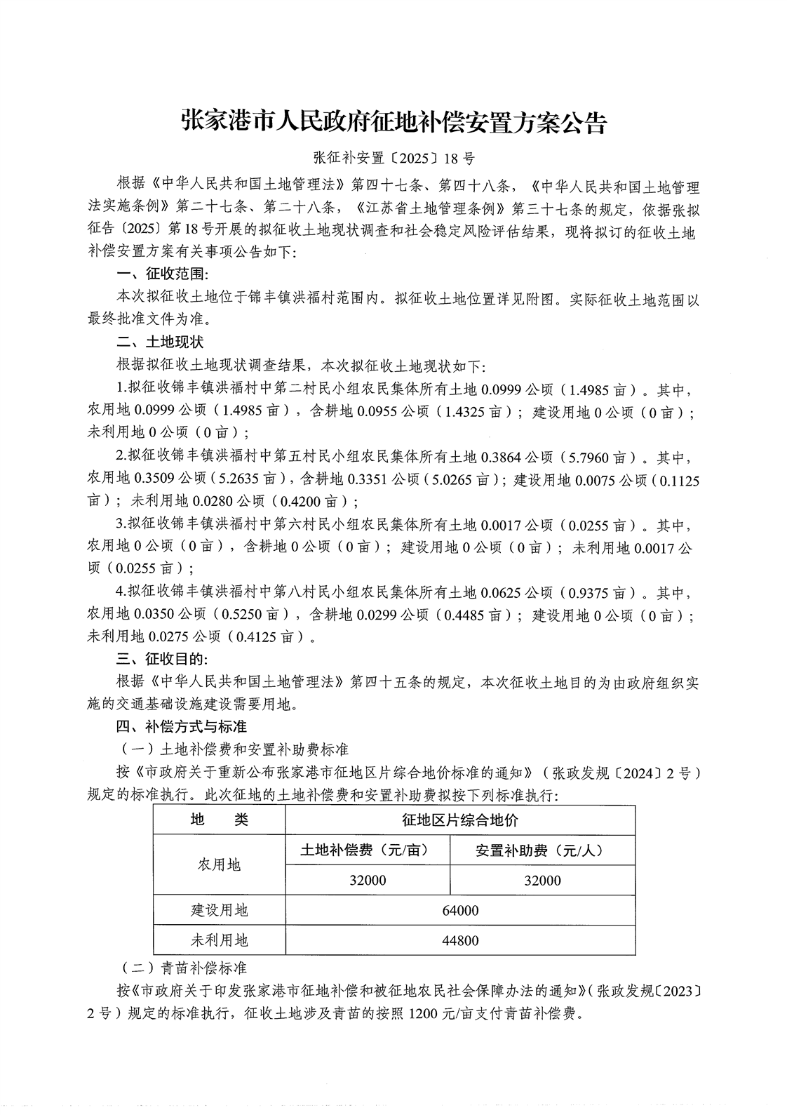 征地补偿安置方案公告(张征补安置[2025]18号)